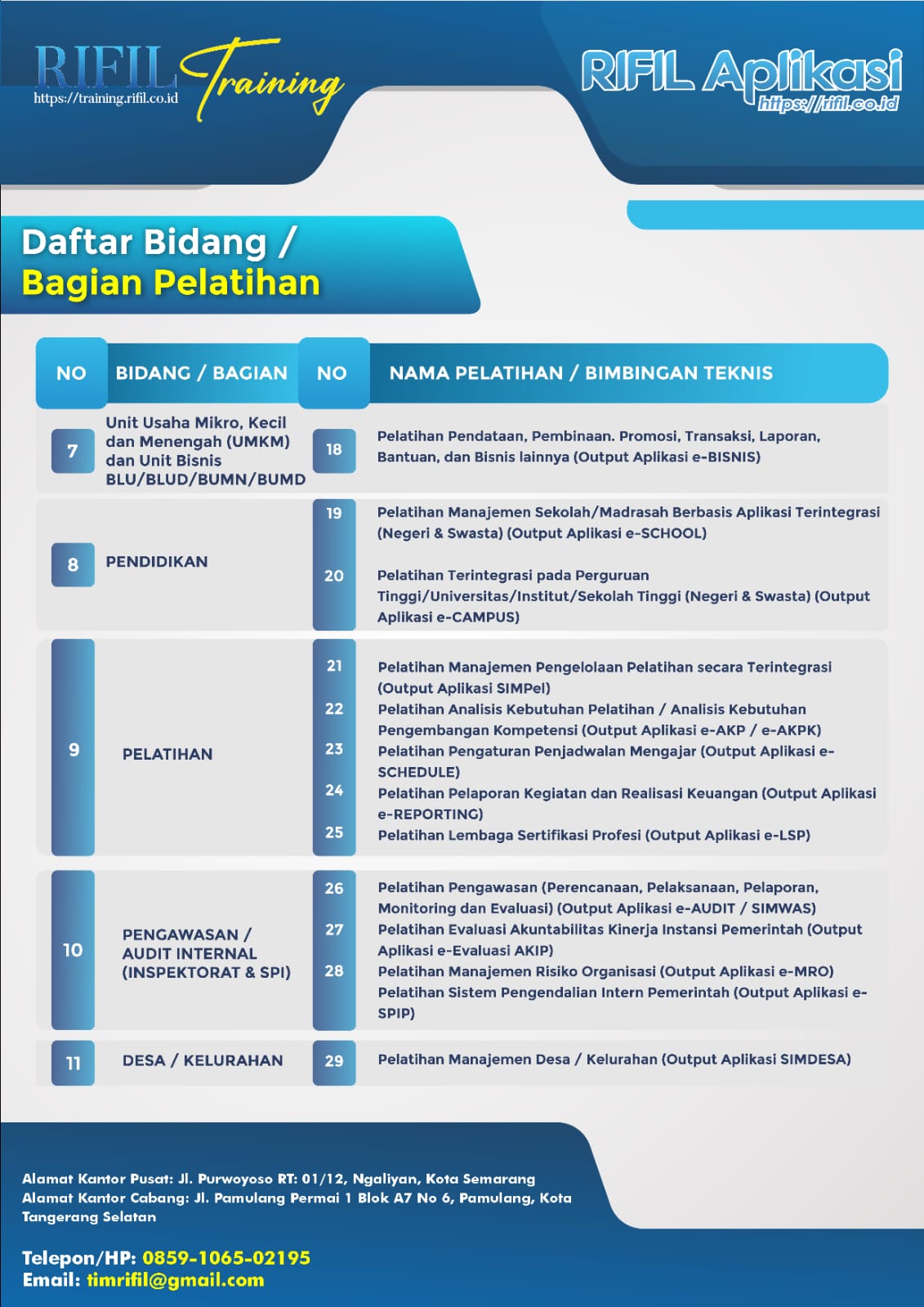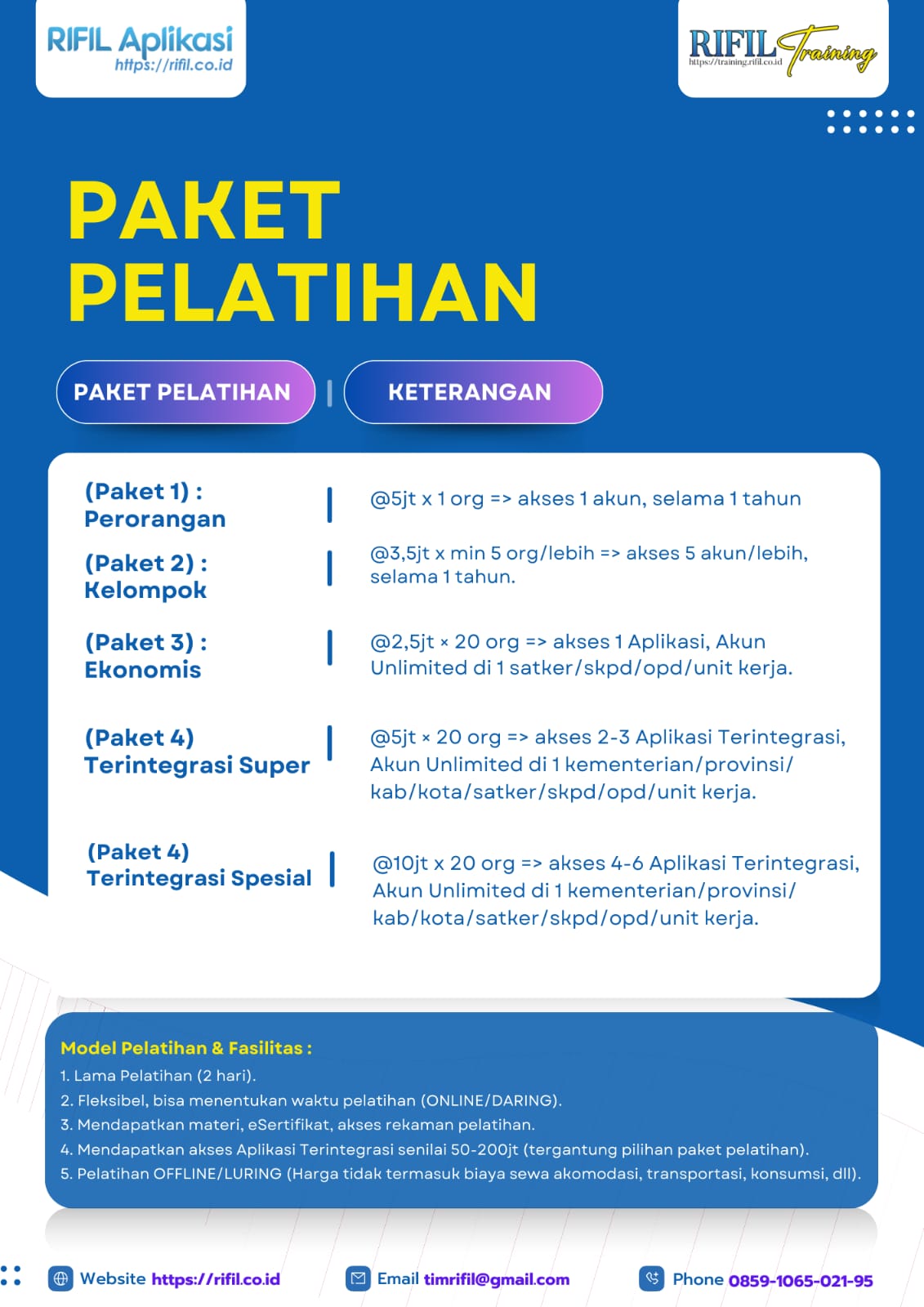 RIFIL Training menyediakan berbagai pelatihan / bimbingan teknis bagian / bidang pemerintahan, dengan mendapatkan output…